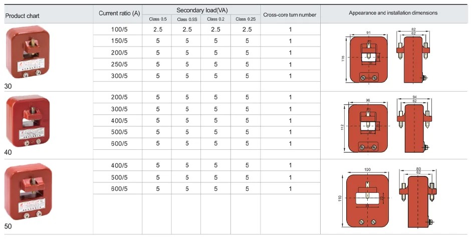Kõrge täpsusklass 0,5 – LMZJ1-0,66 voolutrafo on konstrueeritud klassi 0,5 täpsusega, et tagada stabiilne ja usaldusväärne voolumõõtmine, pakkudes usaldusväärseid andmeid seire- ja kaitsesüsteemide jaoks.